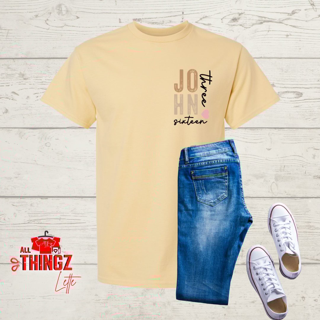 The text is printed in a distressed, multi-colored gradient of pastel blue, purple, and green on a soft, dark gray shirt. This design is perfect for those who want to celebrate their personal growth and spiritual journey. Made from comfortable, high-quality fabric, it's a great everyday tee with a meaningful statement.